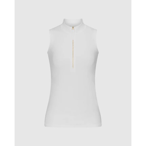 Designed with a refined stand collar, gold zipper detailing, and built-in UPF protection, the Tabitha brings elevated polish to any active or off-duty moment. A flattering, versatile staple that pairs effortlessly with trousers, skirts, or layered under outerwear.